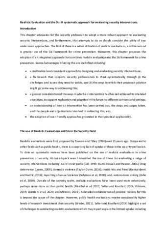 This chapter advocates for a greater uptake of two underused approached in the security field, realistic evaluation and the 5Is framework, to support more robust and systematic approaches to evaluating security interventions. It contends that a combination of these two complimentary approaches affords a methodical approach to support the design of security interventions, enables a systematic approach for the evaluation of security interventions, offers a greater understanding by the mechanisms which a security intervention has or has not worked in a particular setting or place, facilitates replication and future adaption of security interventions in different contexts, and provides a user-friendly structure for disseminating and communicating the evaluation results of interventions to security practitioners. This chapter examines the strengths and limitations of each approach, the merits of combining the two, and uses a hypothetical scenario to guide the reader through how to carry out a combined realistic evaluation and 5Is evaluation of a security intervention.