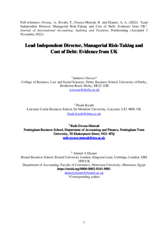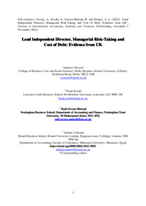 Lead independent director, managerial risk-taking and cost of debt: evidence from UK.