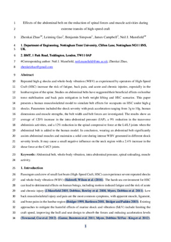 Effects of the abdominal belt on the reduction of spinal forces and muscle activities during extreme transits of high-speed craft.