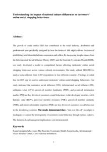 Understanding the impact of national culture differences on customers’ online social shopping behaviours.