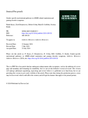Gender-specific motivational pathways in ADHD-related inattention and gaming disorder symptoms.
