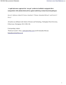 A rapid microwave approach for ‘one-pot’ synthesis of antibiotic conjugated silver nanoparticles with antimicrobial activity against multi-drug resistant bacterial pathogens.