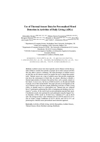 Use of thermal sensor data for personalised mood detection in activities of daily living (ADLs).