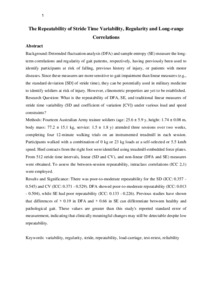 Research Question: What is the repeatability of DFA, SE, and traditional linear measures of stride time variability (SD and coefficient of variation [CV]) under various load and speed constraints?