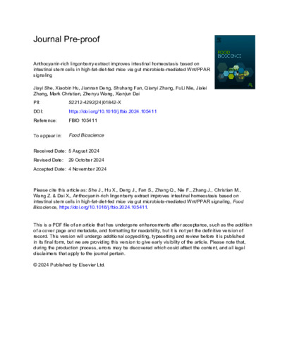 Anthocyanin-rich lingonberry extract improves intestinal homeostasis based on intestinal stem cells in high-fat-diet-fed mice via gut microbiota-mediated Wnt/PPAR signaling.