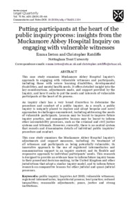 A case study on public inquiry engagement with vulnerable witnesses and on putting participants at the heart of the public inquiry process: insights from the Muckamore Abbey Hospital Inquiry.