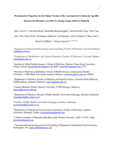 Psychometric properties for the Malay version of the assessment of criteria for specific internet-use disorders (ACSID-11) among young adults in Malaysia.
