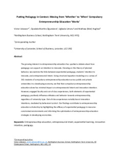 Putting pedagogy back in: moving from 'whether' to 'when' compulsory entrepreneurship education 'works'.