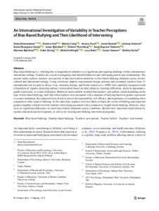 An international investigation of variability in teacher perceptions of bias-based bullying and their likelihood of intervening.