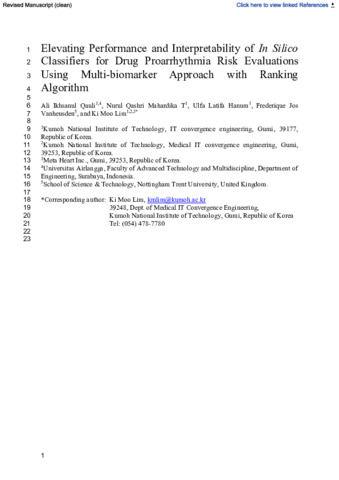 Elevating performance and interpretability of in silico classifiers for drug proarrhythmia risk evaluations using multi-biomarker approach with ranking algorithm.