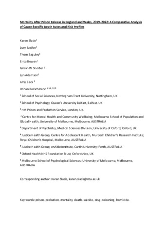 Mortality after prison release in England and Wales, 2019-2021: a comparative analysis of cause-specific death rates and risk profiles.