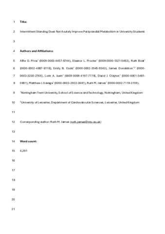 Intermittent standing does not acutely improve postprandial metabolism in university students.