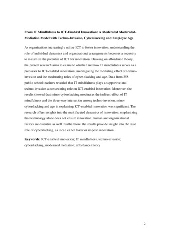 From IT mindfulness to ICT-enabled innovation: a moderated moderated-mediation model with techno-invasion, cyberslacking and employee age.