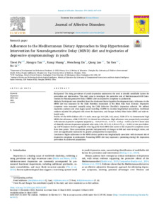 Adherence to the Mediterranean dietary approaches to stop hypertension intervention for neurodegenerative delay (MIND) diet and trajectories of depressive symptomatology in youth.