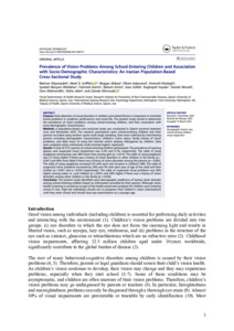 Prevalence of vision problems among school-entering children and association with socio-demographic characteristics: an Iranian population-based cross-sectional study.
