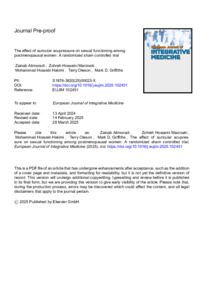 The effect of auricular acupressure on sexual functioning among postmenopausal women: a randomized sham controlled trial.