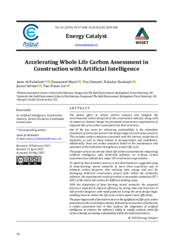 Accelerating whole life carbon assessment in construction with artificial intelligence.