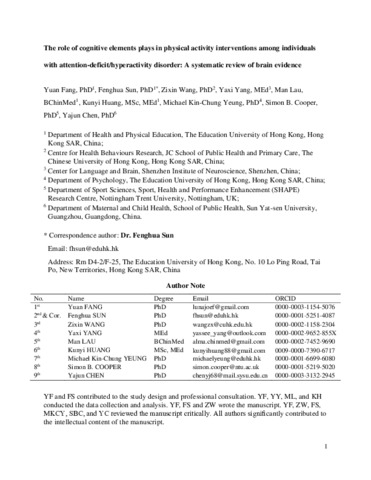 The role of cognitive elements plays in physical activity interventions among individuals with attention-deficit/hyperactivity disorder: a systematic review of brain evidence.