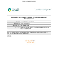 Design/methodology/approach: A scoping review of electronic databases was undertaken focusing on the studies related to emotions or arousal detection in children with Autism.