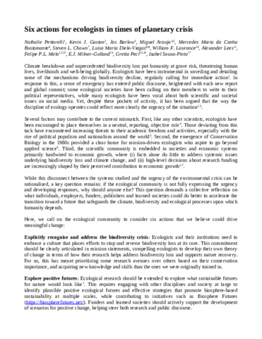 Six actions for ecologists in times of planetary crisis.