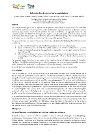 This paper will review and build on the work of others in the calculation of embodied carbon of lime treatment considering: