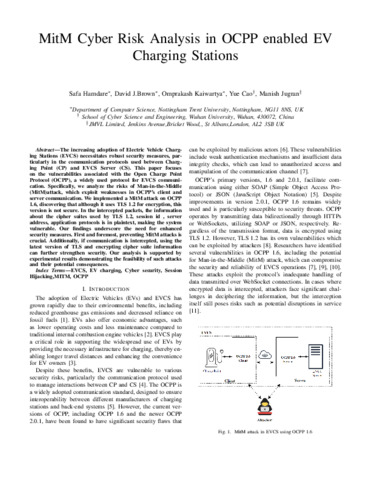 MitM cyber risk analysis in OCPP enabled EV charging stations.