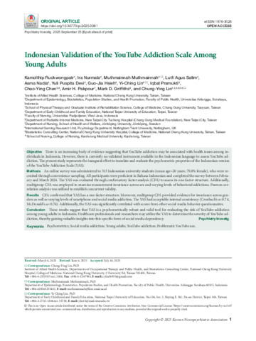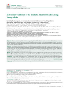Objective: There is an increasing body of evidence suggesting that YouTube addiction may be associated with health issues among individuals in Indonesia. However, there is currently no validated instrument available in the Indonesian language to assess YouTube addiction. The present study represents the inaugural effort to translate and evaluate the psychometric properties of the Indonesian version of the YouTube Addiction Scale (YAS).