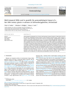 Multi-temporal DEMs used to quantify the geomorphological impact of a late 20th century glacier re-advance at Schwarzberggletscher, Switzerland.