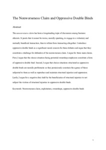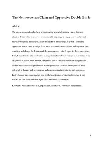 The nonworseness claim has been a longstanding topic of discussion among business ethicists. It posits that it cannot be worse, morally speaking, to engage in a voluntary and mutually beneficial transaction, than to refrain from transacting altogether. I introduce oppressive double binds as a significant moral concern for these debates and argue that they constitute a challenge for defenders of the nonworseness claim. I argue for three main claims. First, I argue that the choice situation facing potential sweatshop employees constitute a form of oppressive double bind. Second, I argue that choice situations structured as oppressive double binds are morally problematic as they perniciously constrain the agency of those subjected to them as well as reproduce and maintain structural injustice and oppression. Lastly, I argue for a negative duty held by the beneficiaries of structural injustice to not subject the victims of structural injustice to oppressive double binds.