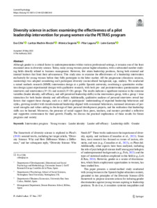 Diversity science in action: examining the effectiveness of a pilot leadership intervention for young women via the PETRAS program.
