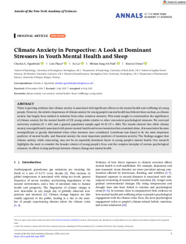 Climate anxiety in perspective: a look at dominant stressors in youth mental health and sleep.
