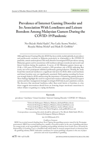 Abdul Kadir, NB, Nordin, NLA, Mohd, RH and Griffiths, MD ORCID: https://orcid.org/0000-0001-8880-6524,