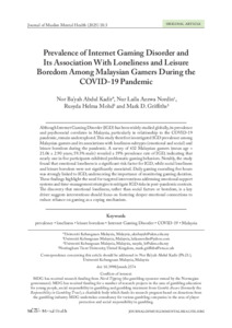 Prevalence of internet gaming disorder and its association with loneliness and leisure boredom among Malaysian gamers during the COVID-19 pandemic.