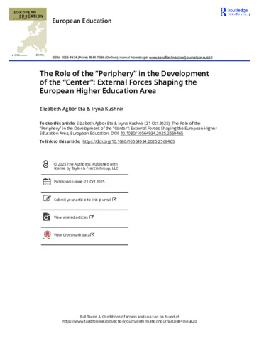 Discussions on the European Higher Education Area (EHEA) often highlight its global influence. However, the role of non-EHEA countries—the “periphery”—in shaping its development remains underexplored. This article examines how the “periphery” has contributed to the EHEA’s evolution. Drawing on world-system and decolonial theories and using critical discourse analysis of 26 EHEA documents (1998–2024), we argue that the “periphery” is not merely a passive recipient of EHEA policies but has played a key role in its construction. This argument is explored through three themes: (1) constitutive influence of the periphery on the EHEA’s external dimension; (2) historical and structural role of the periphery in the EHEA’s global status; and (3) the “periphery” as a consultative body shaping EHEA policy dialogue. Recognizing these roles challenges Eurocentric narratives and underscores the “periphery’s” agency in co-constructing global higher education. These insights are crucial for informing international policy discussions and reform efforts within EHEA signatory states and beyond. By shifting the focus from EHEA’s dominance to a more collaborative and nuanced relationship between the core and the periphery, this analysis offers a revised understanding of how global higher education is shaped beyond traditional core–periphery binaries.