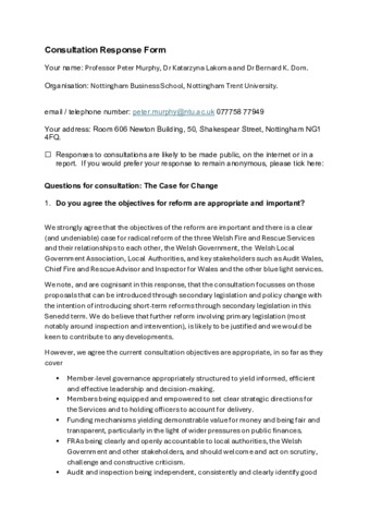 Response to the Welsh Governments' consultation on the reform of fire and rescue authorities in Wales 2025.