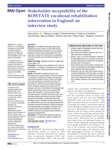 Stakeholder acceptability of the ROWTATE vocational rehabilitation intervention in England: an interview study.
