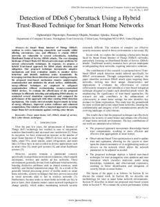 Detection of DDoS cyberattack using a hybrid trust-based technique for smart home networks.