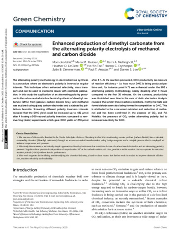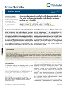 Enhanced production of dimethyl carbonate from the alternating polarity electrolysis of methanol and carbon dioxide.