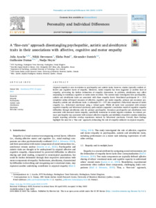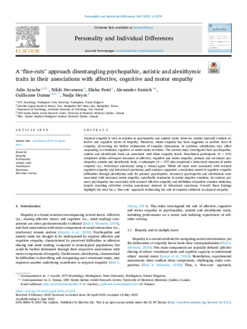 A “fine-cuts” approach disentangling psychopathic, autistic and alexithymic traits in their associations with affective, cognitive and motor empathy.