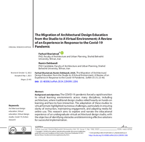 Background and objectives: The COVID-19 pandemic forced a rapid transition to virtual learning environments across many disciplines, including architecture, where traditional design studios relied heavily on hands-on learning and face-to-face interaction. The adaptation of these studios to virtual formats highlighted numerous challenges, particularly in ensuring clarity of instruction, maintaining engagement, and adapting media for online use. This research aims to explore and narrate the educational experience of an undergraduate virtual architectural design studio, with the objective of identifying obstacles and determining effective solutions for successful implementation.