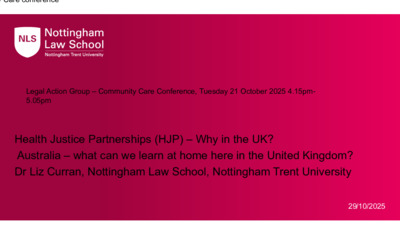 In: Legal Action Group Community Care Conference 2025, London, 21 October 2025.