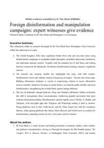 | Description: | Written evidence for the Foreign Affairs Committee inquiry Disinformation diplomacy: how malign actors are seeking to undermine democracy |