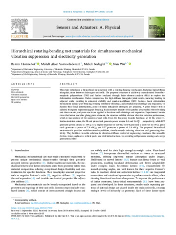 Hierarchical rotating-bending metamaterials for simultaneous mechanical vibration suppression and electricity generation.