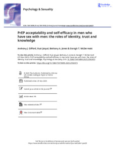 PrEP acceptability and self-efficacy in men who have sex with men: the roles of identity, trust and knowledge.