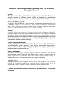 Purpose: This study examines the impact of climate risk exposure and sustainability disclosures on financing conditions of European startups. It seeks to understand how environmental considerations shape entrepreneurial finance in an increasingly sustainability-driven economy.