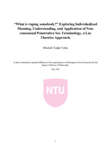 Tobin, MT, 2025. “What is raping somebody?” Exploring individualised meaning, understanding, and application of non-consensual penetrative sex terminology, a lay theories approach. PhD, Nottingham Trent University.