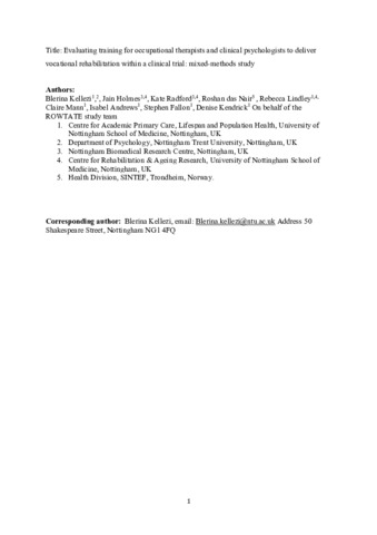 Evaluating training for occupational therapists and clinical psychologists to deliver vocational rehabilitation within a clinical trial: mixed-methods study.