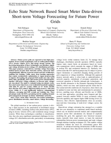 Echo state network based smart meter data-driven short-term voltage forecasting for future power grids.