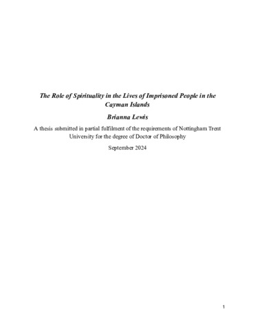 Lewis, B, 2024. The role of spirituality in the lives of imprisoned people in the Cayman Islands. PhD, Nottingham Trent University.