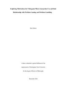 Micro-transactions are a popular form of monetisation in videogames, suggested to be a convergence between gaming and gambling. Following the implementation of micro-transactions into games, there has been debate about their psychological impacts, including their associations with problem gaming and gambling behaviour. However, there has been limited academic research concerning a broad range of micro-transactions, beyond the most discussed form, loot boxes. Of interest to the present thesis is the underlying motivations that drive micro-transaction use. Specifically, this thesis aims to explore motivations for micro-transaction use and their relationship to problem gaming and gambling behaviour.